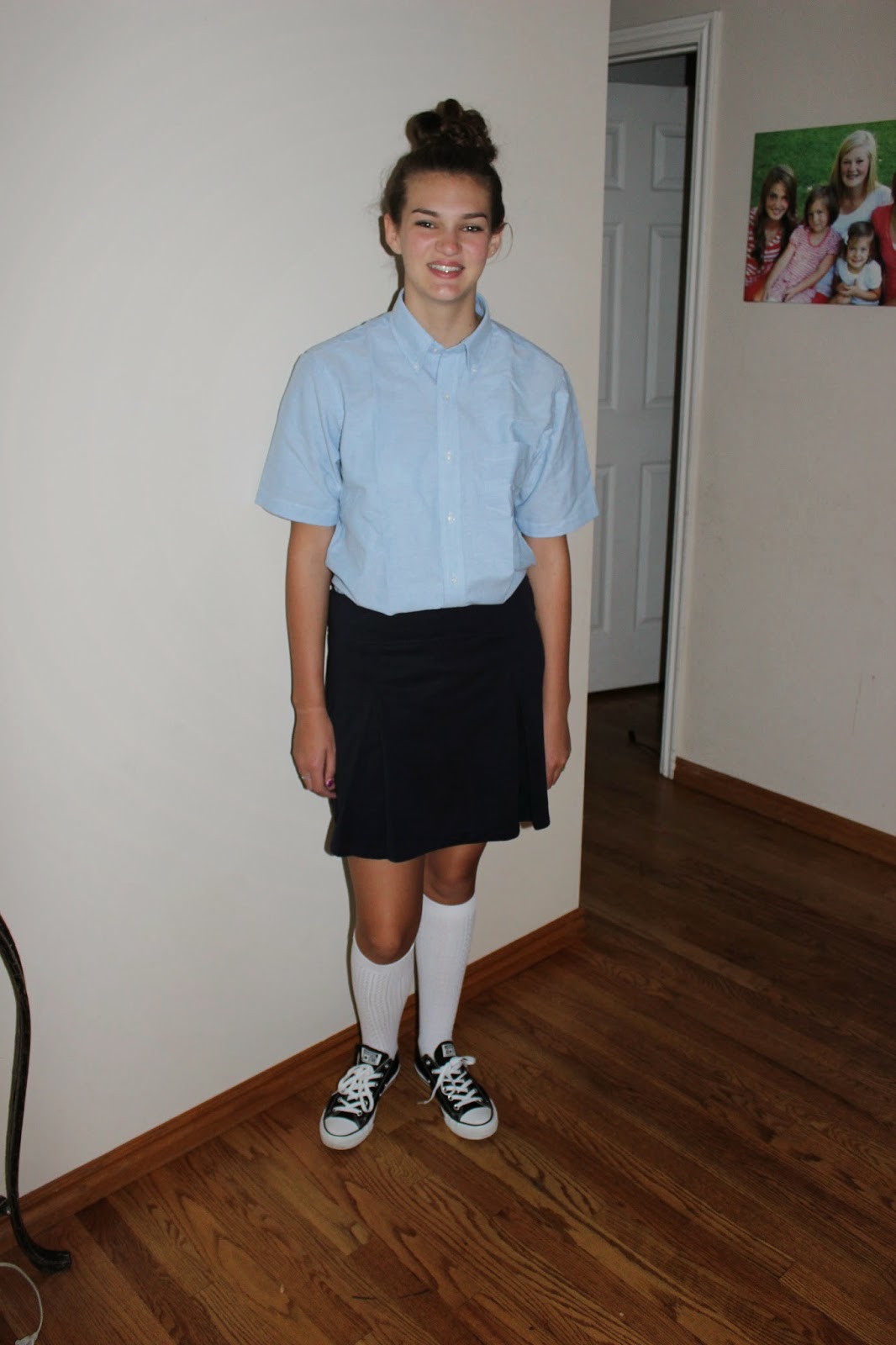 The following day was Malia, Bria and Ada's first days. Because Ada has afternoon Kindergarten She wasn't available for the early morning shoot. Sierra wearing her SBO sweater and Malia and Bria their school uniforms. I love love the school uniforms. Nothing cuter than a little girl in a plaid jumper with a cross tie. Malia is a good sport to endure her blue oxford shirt with blue or khaki skirts. Hope this year is the best. Malia is a 9th grader and Bria a 1st grader.